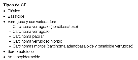 Dentro del carcinoma epitelial existen diferentes variedades de presentación: