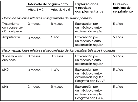 Este esquema de seguimiento es propuesto por la guía clínica de la EAU de 2018 (45).